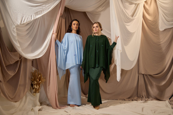 The kurung design seamlessly blends traditional charm with a modern twist, offering a perfect balance of modesty and style. The discreet hook closure ensures a seamless fit, providing comfort and ease with every wear. Maria is for those who appreciate understated luxury and seek pieces that are as exceptional as they are.