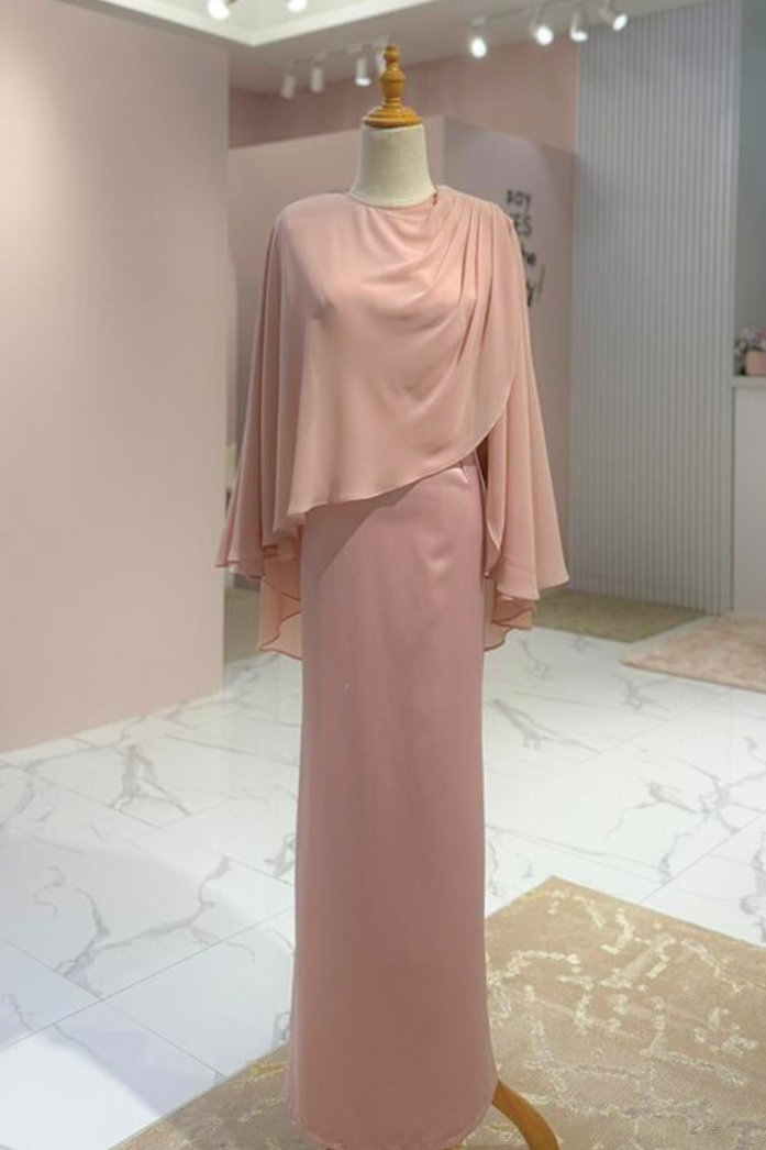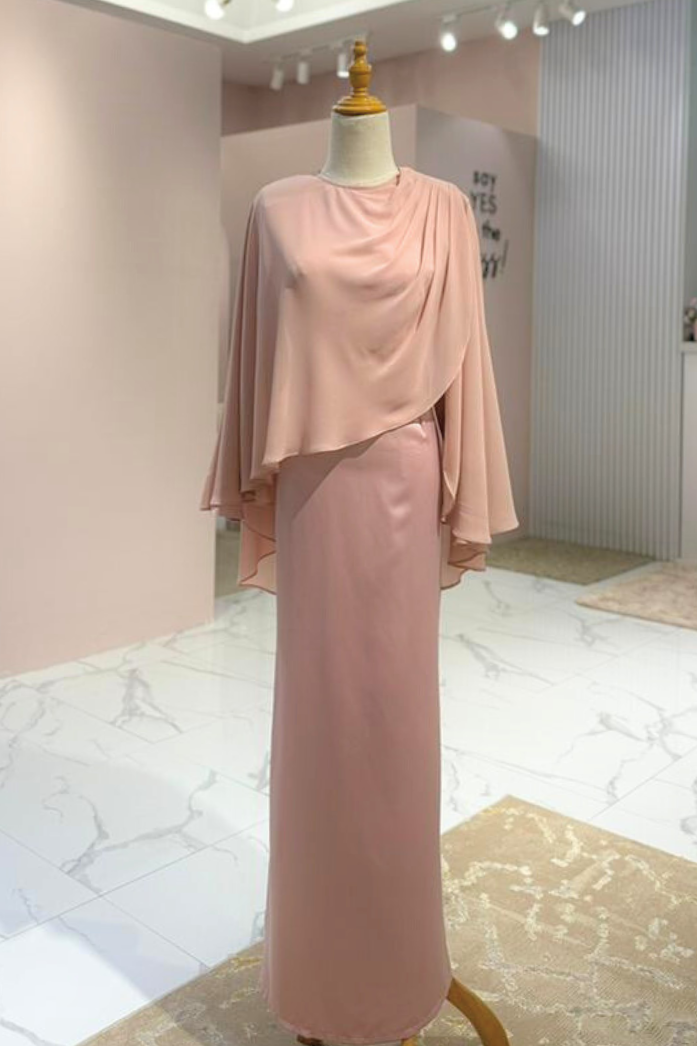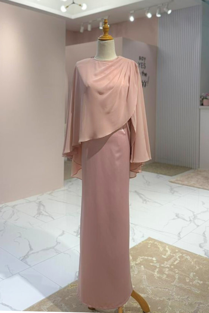 Material:Â Premium satin, with heavy chiffon draping (no lining)